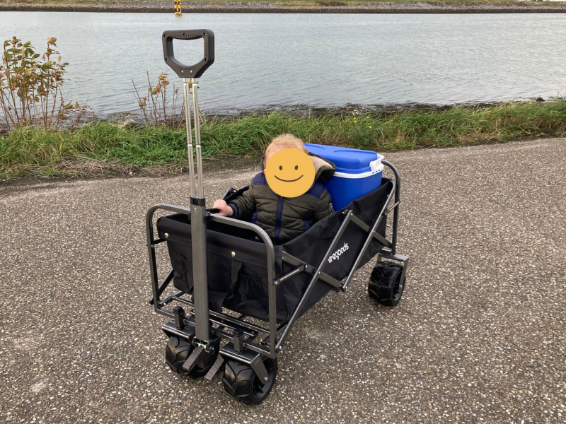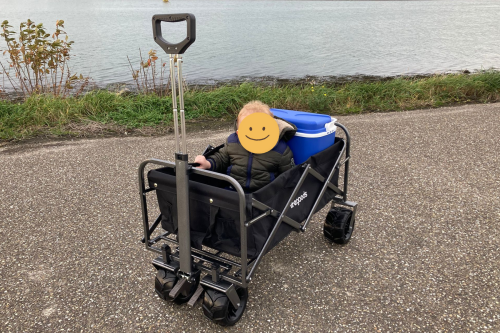 Om daar achter te komen, hebben wij deze opvouwbare bolderkar besteld en uitgebreid getest met onze kinderen van 2 en 7 jaar. In verschillende praktische situaties, van strand tot bos en in onze woonplaats.
