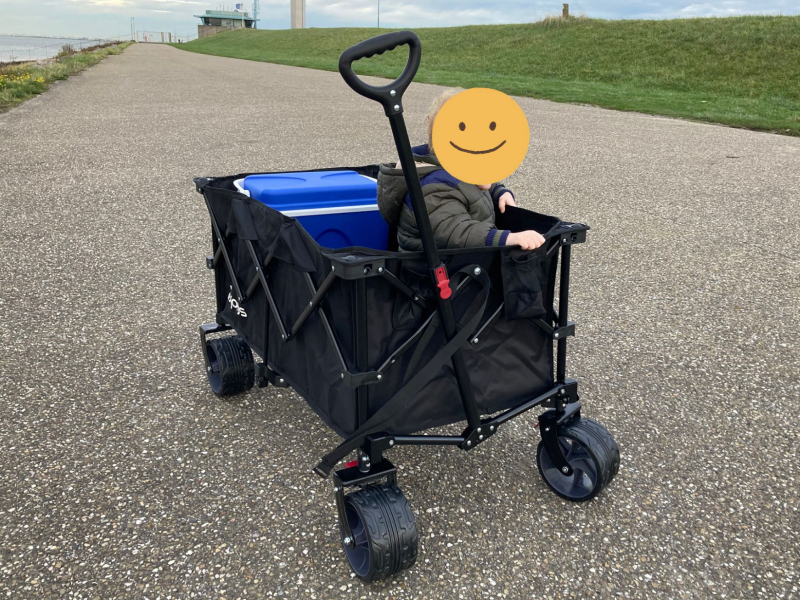 De LifeGoods XL 100kg bolderkar is een flinke kar met een inhoud van maar liefst 200 liter! Dat betekent dat je er echt een hoop spullen in kwijt kunt. Maar is dit model nou echt zo handig als iedereen zegt? Om dat uit te zoeken, hebben wij de bolderkar zelf besteld en uitgebreid getest; met ons kind van 2 jaar, een koelbox en een paar goed gevulde tassen.